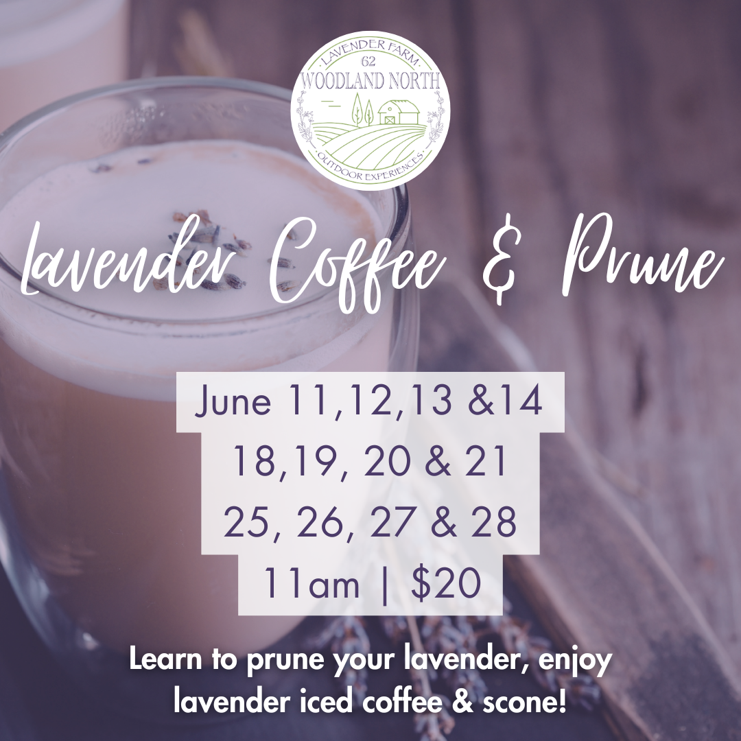 For most of June: Learn to prune your lavender and enjoy a lavender iced coffee & scone!